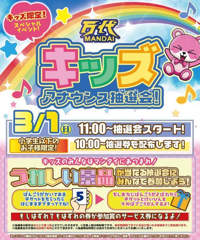 【3/1(日)開催📢】キッズアナウンス抽選会!