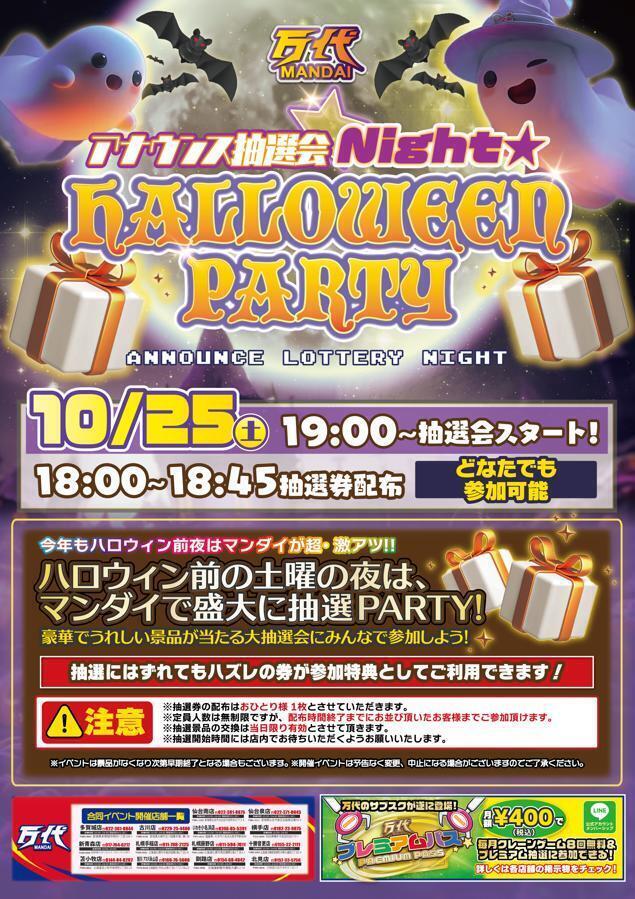 【今週末!🎃】10/25(土)の夜はハロウィン大抽選会PARTY!