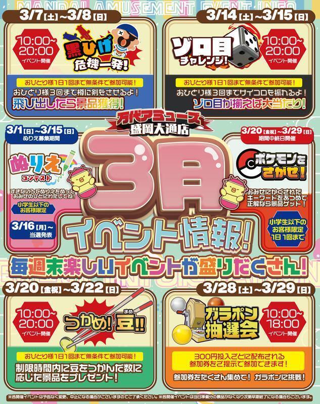 【万代アミューズ 盛岡大通店】3月イベント情報!