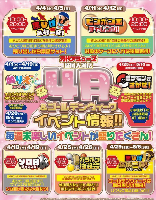 【万代アミューズ 盛岡大通店】4月&ゴールデンウィークイベント情報🐤