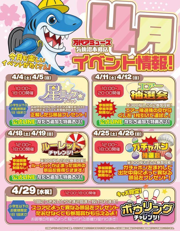 【万代アミューズ 気仙沼本郷店】4月イベント情報🦈