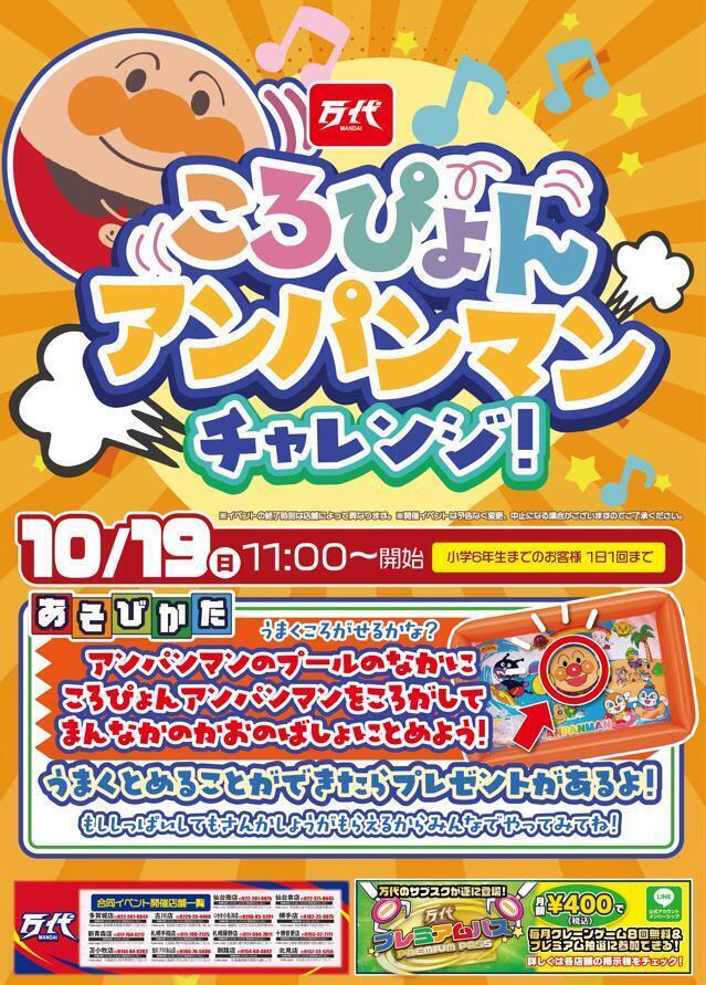 今週末の日曜日、10月19日は大人気! 「ころぴょんアンパンマンチャレンジ」を開催します! (※小学生以下のお子様限定です) アンパンマンのプールの中に、ころがるアンパンマンをうまく転がして、真ん中のゴールをめざそう! 見事、うまく止めることができたらプレゼントをゲット!🎁 もし失敗しちゃっても、がんばったキミには参加賞があるから安心してね! みんなの挑戦を待ってるよ! ーーーーーー ☆万代とは☆ 「遊ぶ!買う!売る!嬉しい!楽しい!」をコンセプトにしたエンターテイメントリユースショップ!大型ゲームセンターを併設し、クレーンゲームやアミューズメントなど多彩なコンテンツをご提供。おもちゃ、トレーディングカード、ゲーム、古着などの買取サービスも充実。「アミューズメント」と「リサイクルショップ」を融合させた新しい体験をお子様、ご家族でぜひお楽しみください! ※店舗ごとに取扱商品が異なりますので各店舗にお問い合わせください。