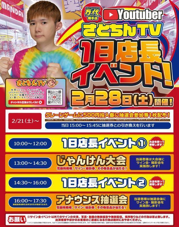 【2/28(土)開催!】さとちんTV 1日店長イベント!😎