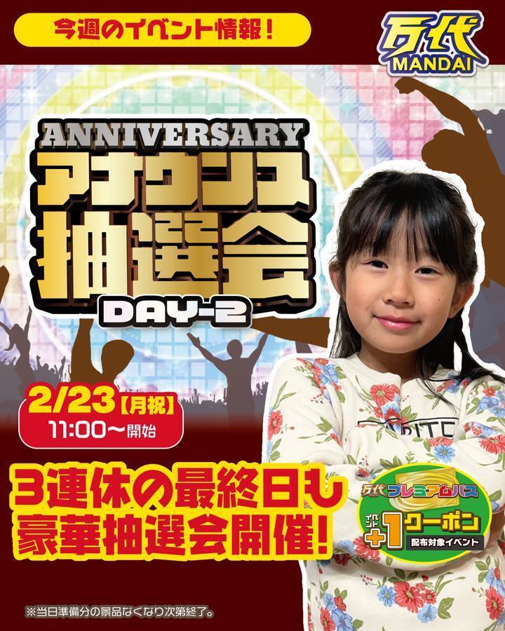【2/23(月祝)開催🎉】万代創業祭 アナウンス抽選会 DAY-2!